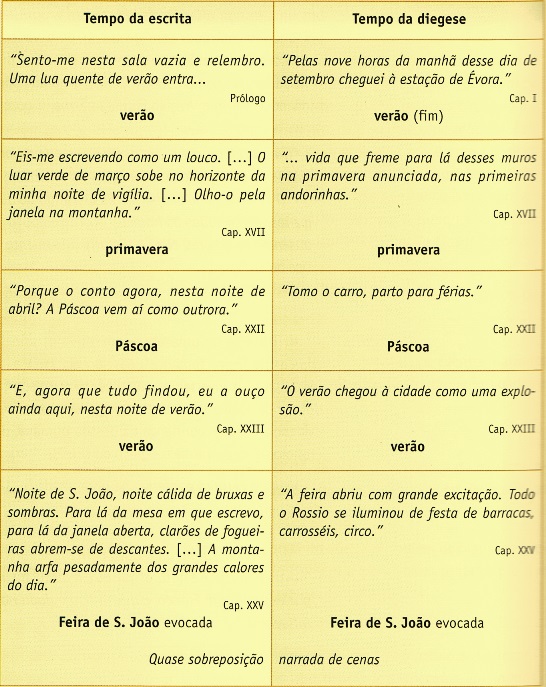 escrita) e as peripécias da diegese / história (tempo da